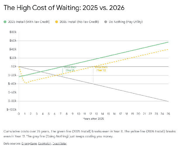 This is the scary part. Let's say the Millers hesitate. They wait until January 2026 to install. They miss the "One Big Beautiful Bill" cutoff.